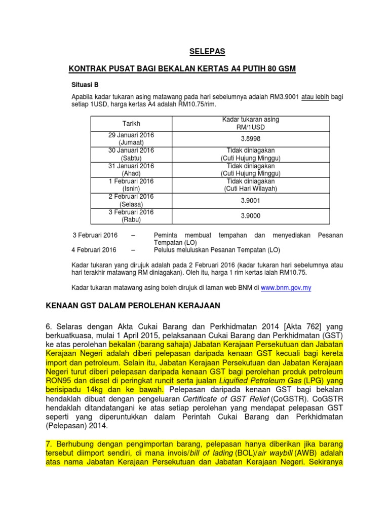 Kaedah Perolehan Kerajaan Kontrak Pusat Kertas A4 80gsm Pdf Document