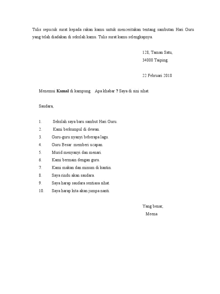Tulis Sepucuk Surat Kepada Rakan Kamu Untuk Menceritakan Tentang Sambutan Hari Guru Yang Telah Diadakan Di Sekolah Kamu