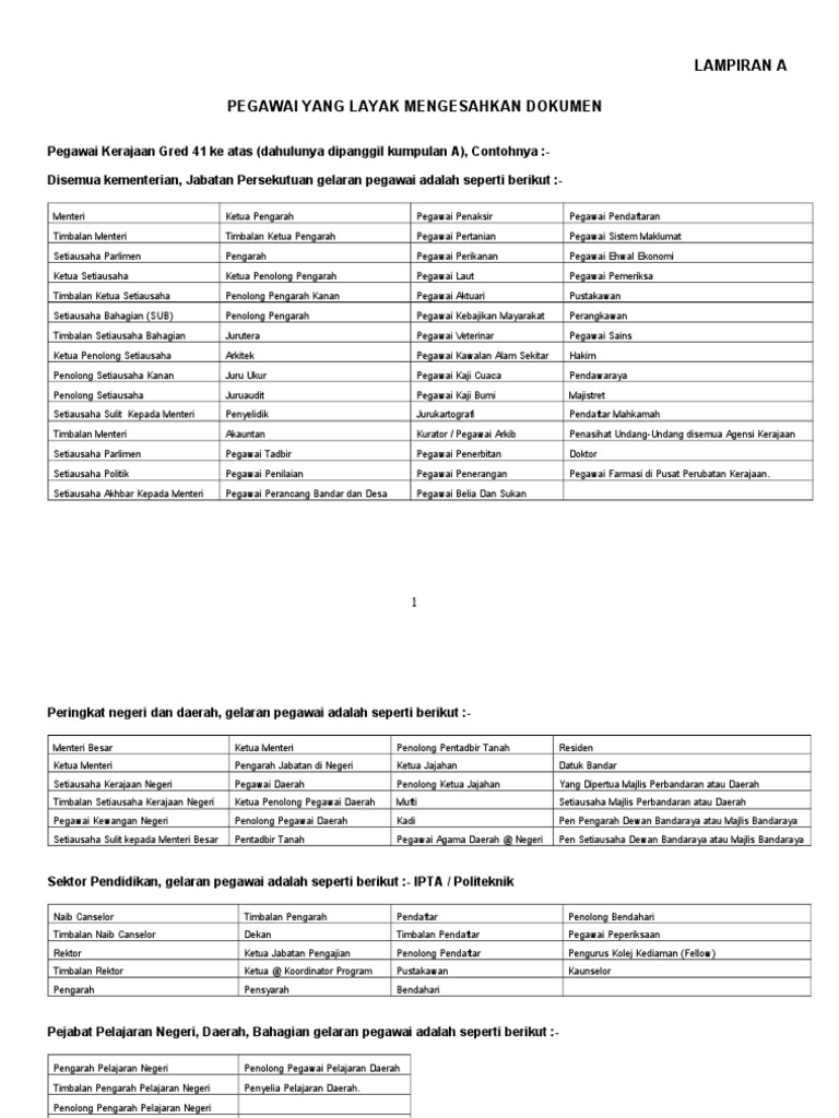 Senarai Pegawai Layak Pengesahan Dokumen Kakitangan Kerajaan Kumpulan A