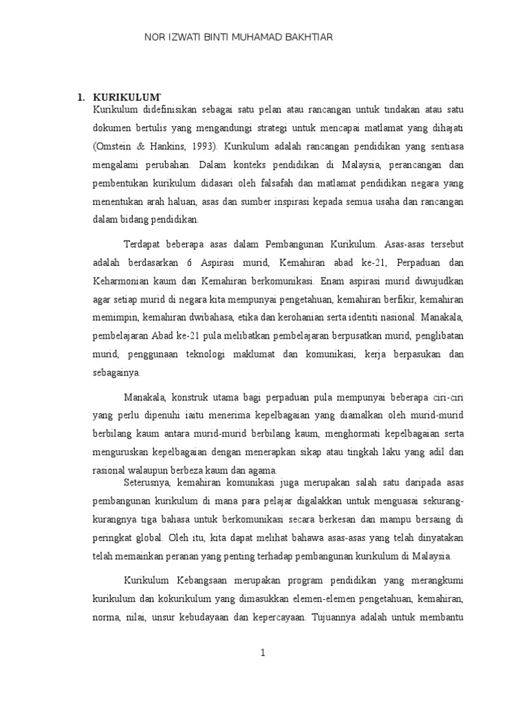1 Kurikulum Nor Izwati Binti Muhamad Bakhtiar