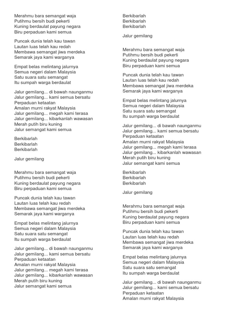 Lirik Lagu Jalur Gemilang Merahmu Bara Semanagat Waja Putihmu Bersih Budi Pekerti Kuning Berdaulat Paying