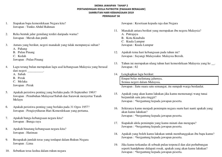 Skema Jawapan Tahap 2