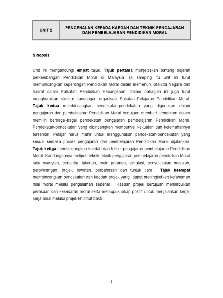 Doc Pengenalan Kepada Kaedah Dan Teknik Pengajaran Dan Pembelajaran Pendidikan Moral Nasihah Ghazali Academia Edu