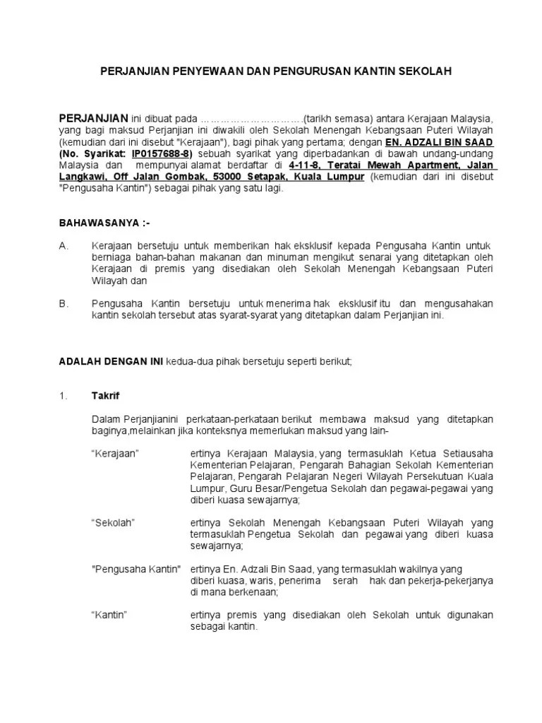 Perlanjutan Perjanjian Penyewaan Dan Pengurusan Kantin Sekolah Autosaved