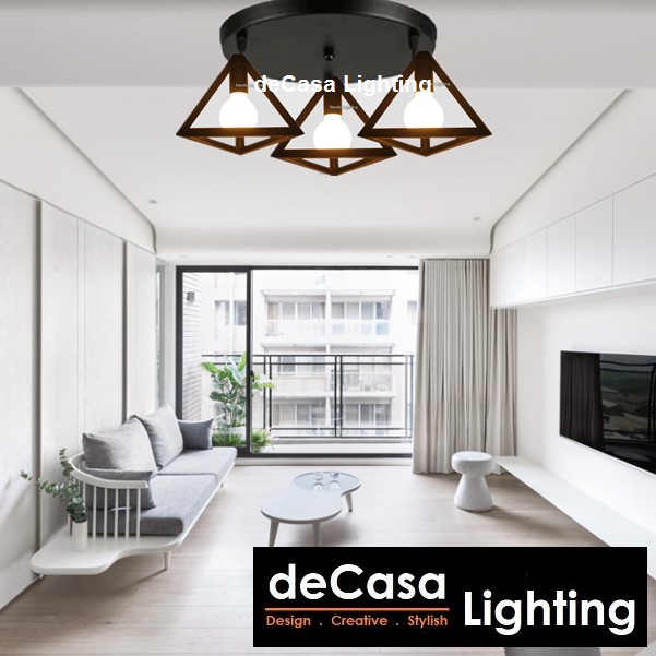Decasa Lighting 3 In 1 Round Base Design Decorative Triangle Ceiling Light Lampu Ruang Tamu Hanging Light Mj16 Bk 3cb Shopee Malaysia