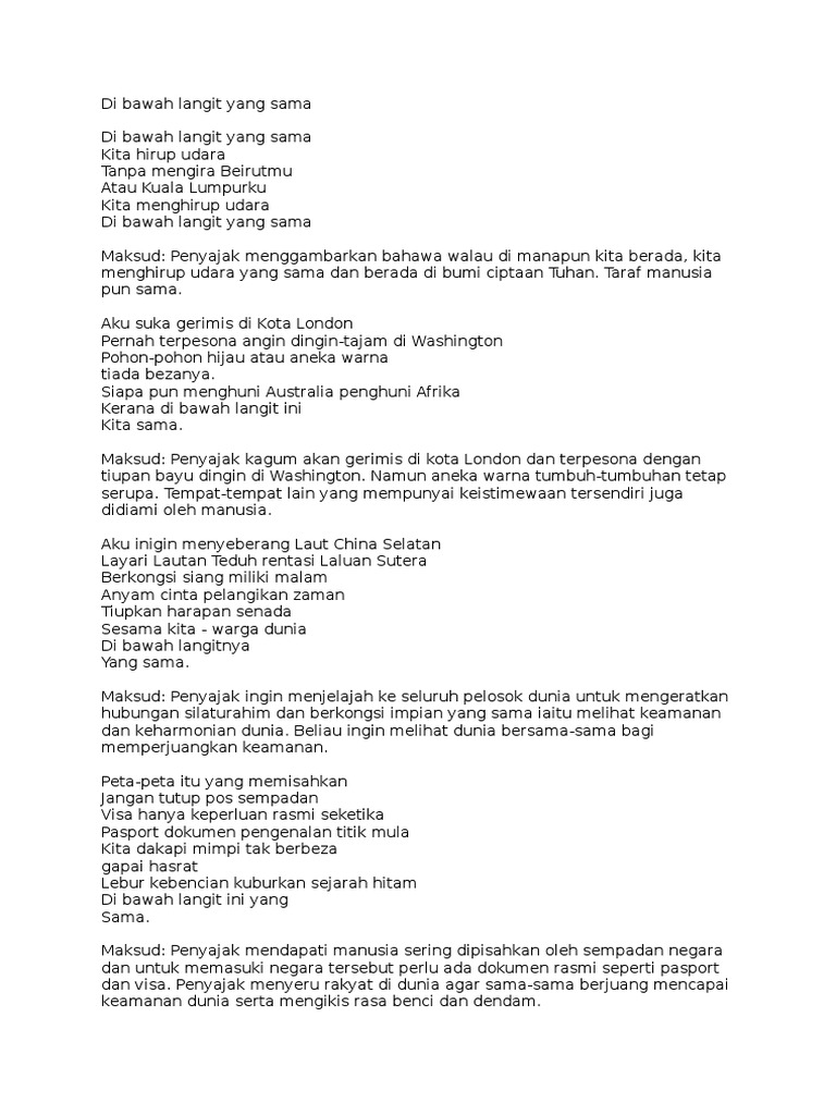 Sajak Di Bawah Langit Yang Sama