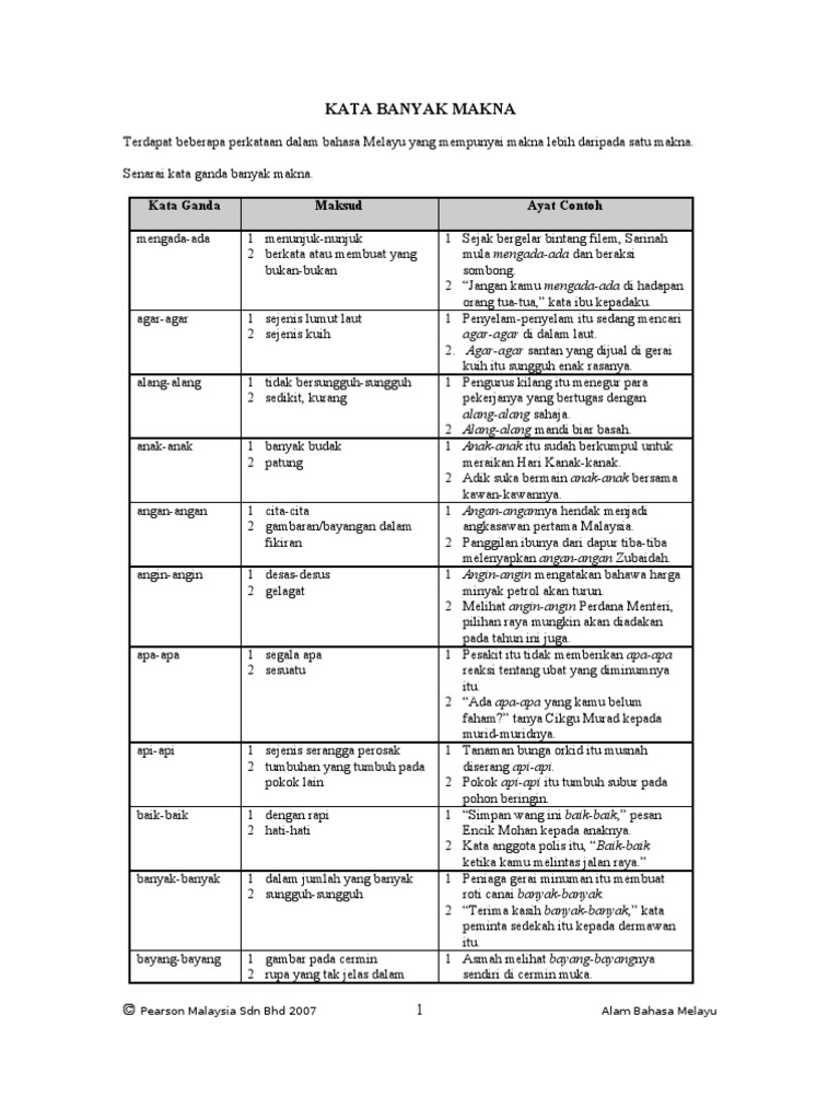 Kata Banyak Makna Kata Ganda Maksud Ayat Contoh