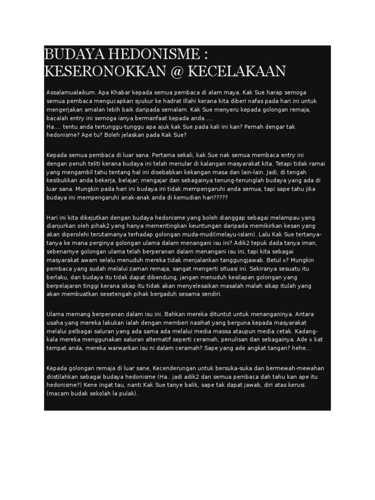 Cadangan Dan Cara Mengatasi Pengaruh Budaya Hedonisme Docx