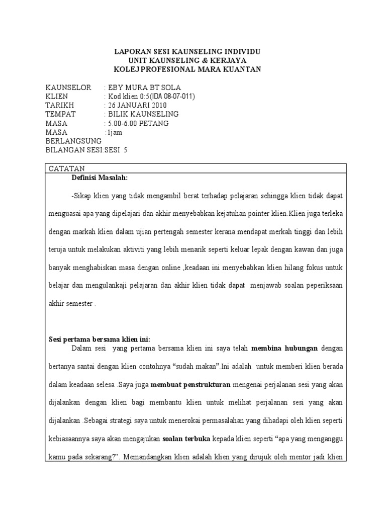 Contoh Format Laporan Sesi Kaunseling Download Docx