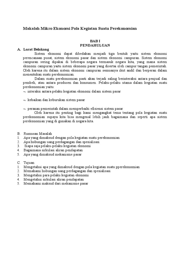 Makalah Mikro Ekonomi Pola Kegiatan Suatu Perekonomian