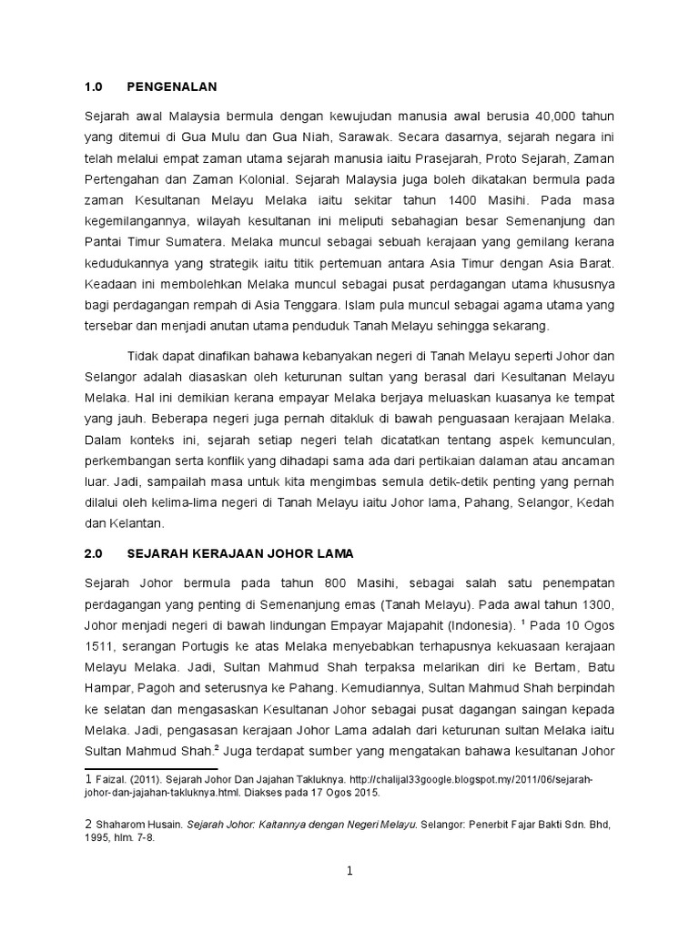 Sjhk 3013 Sejarah Johor Lama Pahang Selangor Kedah Kelantan Docx