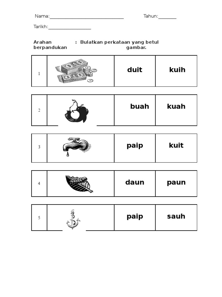 Lembaran Kerja Kemahiran 29 Huruf Vokal Berganding