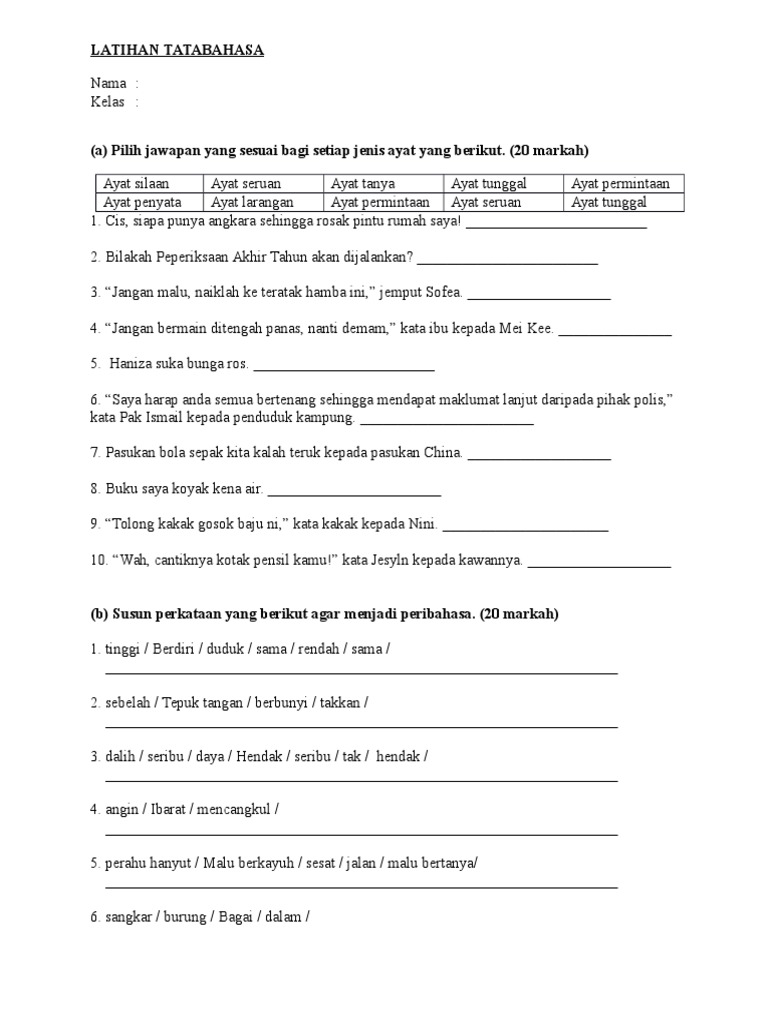 Latihan Tatabahasa Jenis Ayat Dan Membina Ayat Tingkatan 4 1 Docx