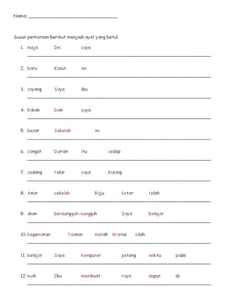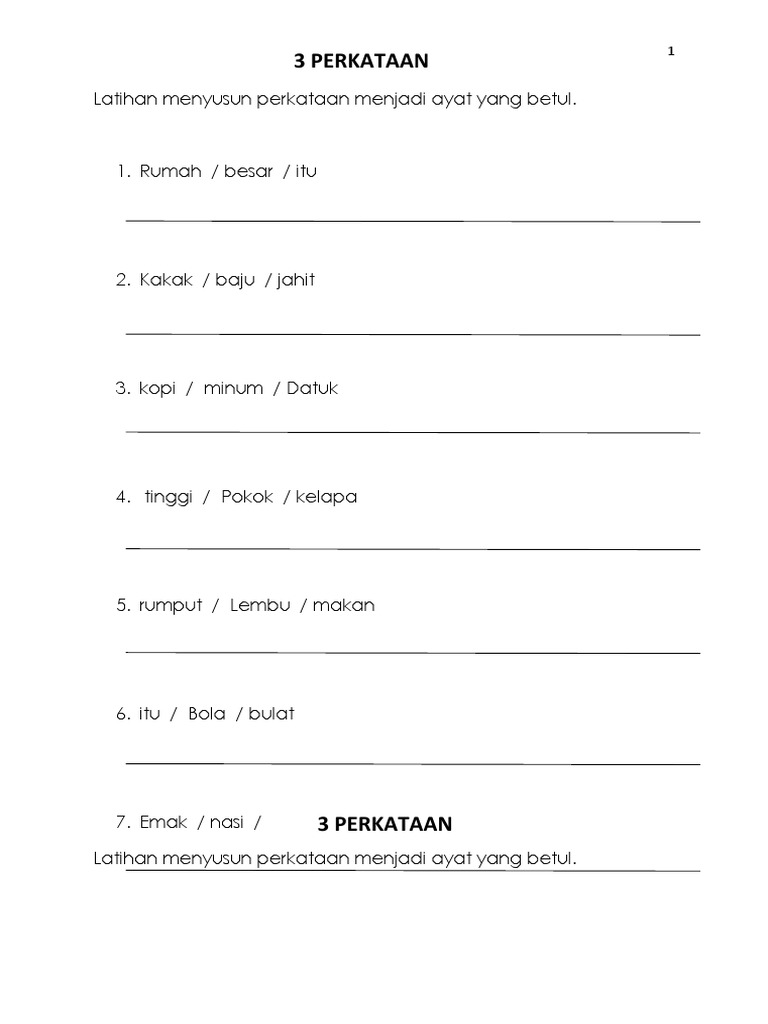Latihan Susun Ayat Tahun 1 Malay Language Education Education College