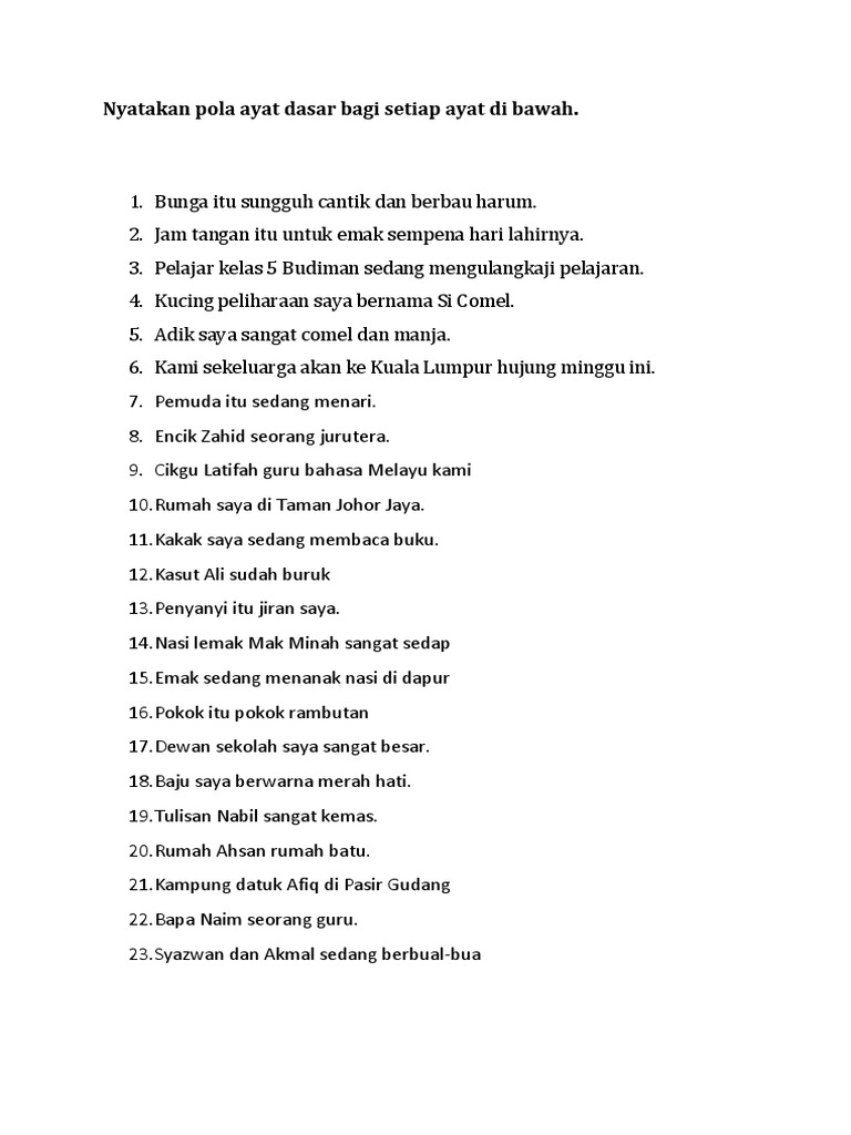 Latihan Pola Ayat Dasar Bahasa Melayu