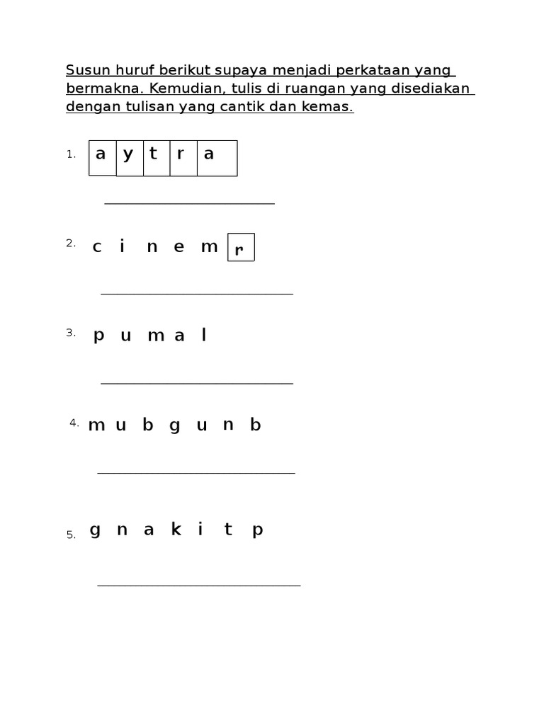 Susun Semula Huruf Di Bawah Ini Agar Menjadi Perkataan Yang Lebih Bermakna