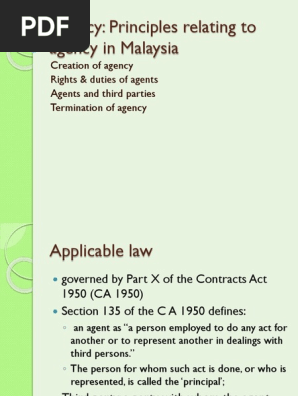 Agency Principles Relating To Agency In Malaysia Law Of Agency Civil Law Legal System