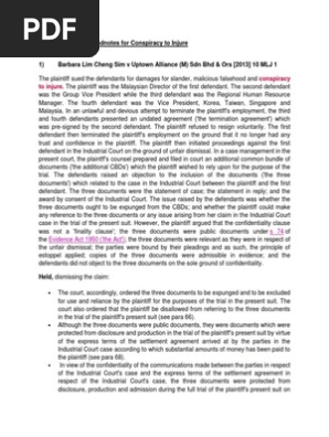List Of Cases And Headnotes For Conspiracy To Injure Defamation Lawsuit