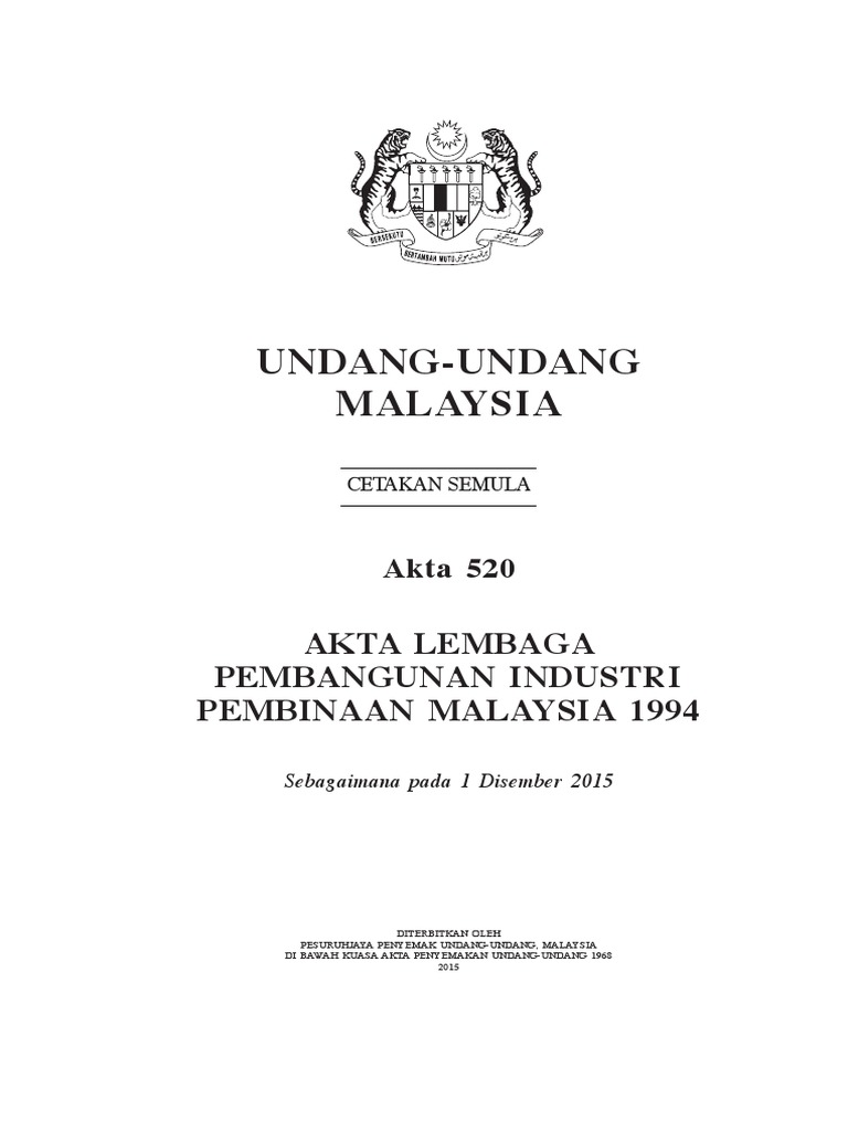 Akta Lembaga Pembangunan Industri Pembinaan Malaysia 1994 Akta 520 Pnmb2u