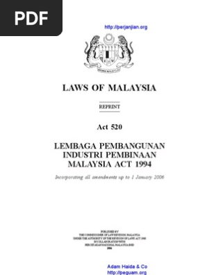 Akta Lembaga Pembangunan Industri Pembinaan Malaysia 1994 Akta 520 Pnmb2u