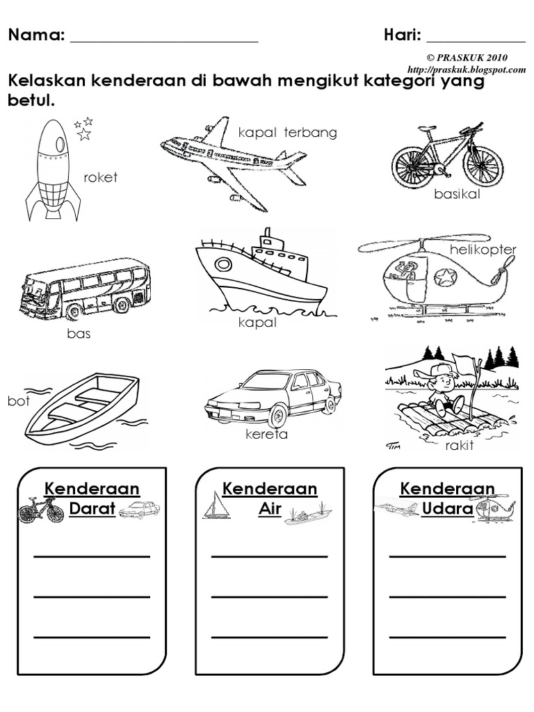Lembaran Kerja Tema Kenderaan Untuk Awal Bahan Prasekolah Facebook