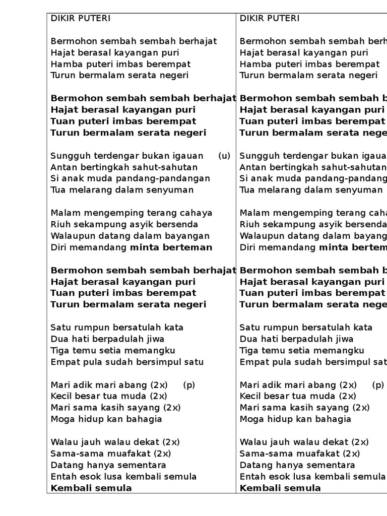 Lirik Lagu Dikir Puteri