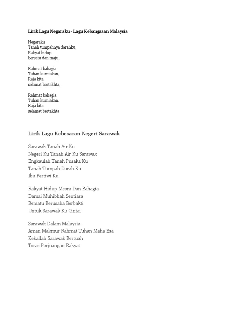 Lirik Lagu Negaraku Negaraku Tanah Tumpahnya Darahku Rakyat Hidup Bersatu Dan Maju Rahmat Bahagia Tuhan