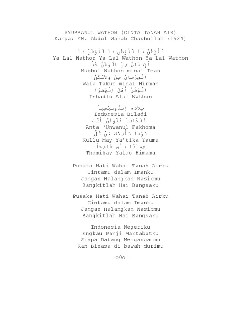 Mohamad Guntur Romli Ar Twitter Kita Bandingkan Lirik Lagu Syubbanul Wathan Kiai Wahab Hasbullah Yg Aslinya Dlm Bhs Arab Lirik Indonesia Versi Baru 2012 Dgn Lirik Indonesia Raya Yg Diciptakan Wr Soepratman