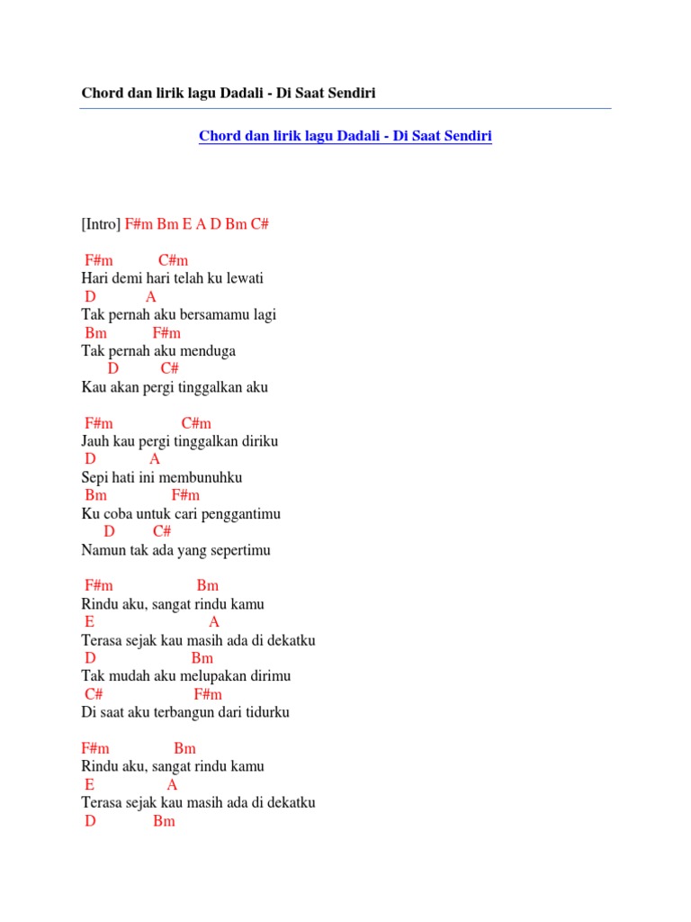Chord Dan Lirik Lagu Dadali Di Saat Sendiri
