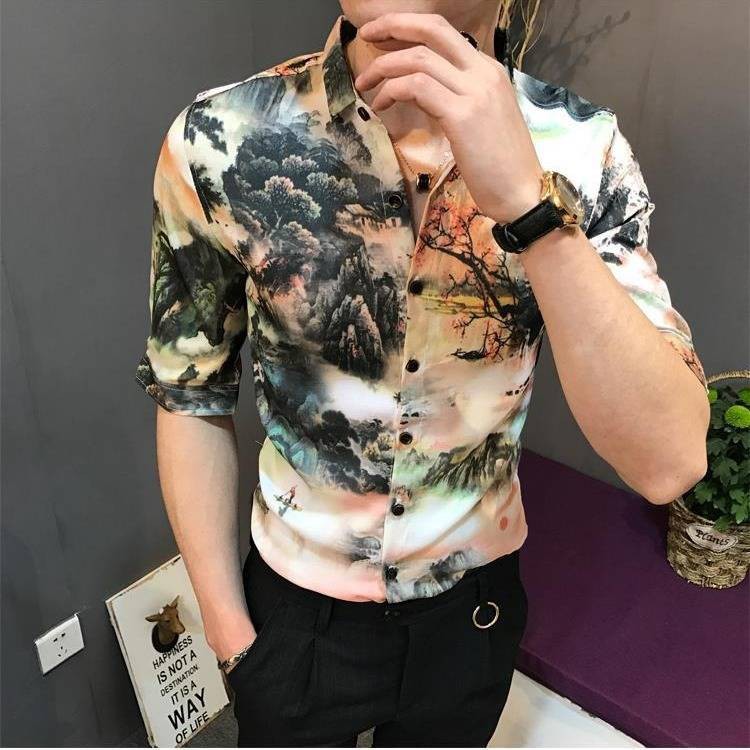 Baju Raya Lelaki Ready Stock Baju Batik Lelaki 2020 Lukisan Lanskap Baru Musim Panas Gaya Cina Baju Cina Lelaki Pemuda Korea Kemeja Lengan Pendek Bercetak Korea Shopee Malaysia