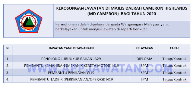 Iklan Jawatan Kosong Di Majlis Daerah Cameron Highlands Portal Rasmi Majlis Daerah Cameron Highlands Mdch