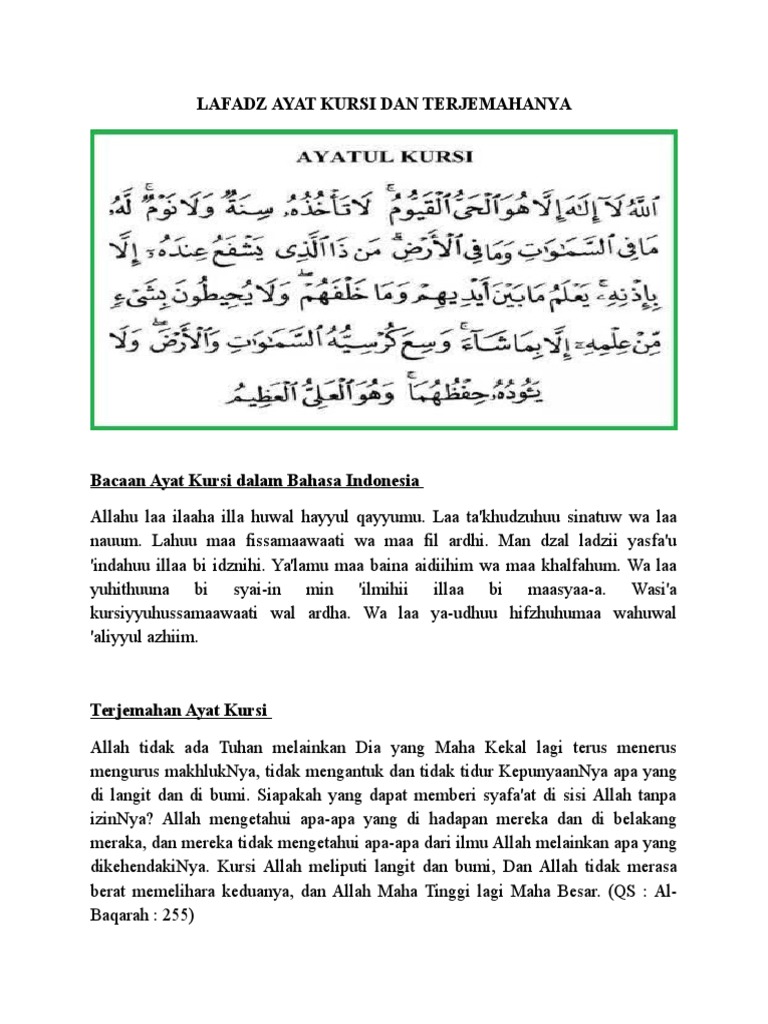 Ayat Kursi Bacaan Rumi Terjemahan Bahasa Malaysia Cute766