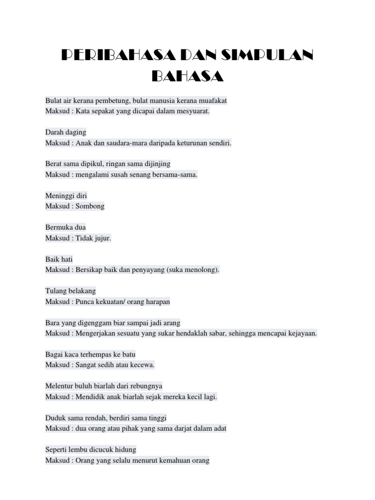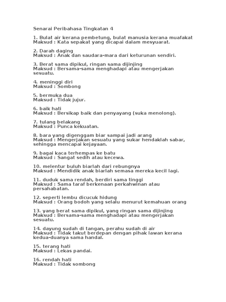 Doc Senarai Peribahasa Dalam Buku Teks Tingkatan Eeeee Waaaa Academia Edu