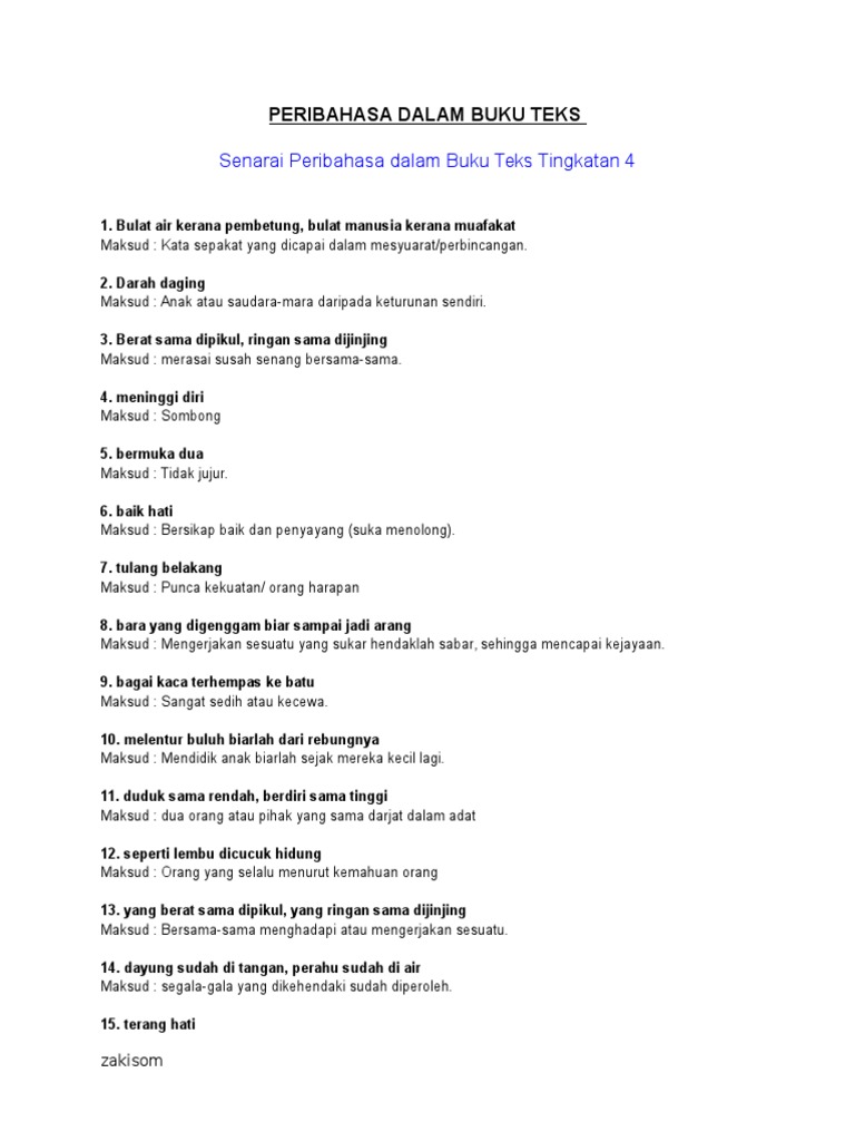 Bulat air kerana pembetung bulat kata kerana muafakat. Bernasib malang kerana setelah memperoleh sesuatu tetapi yang sudah di tangan hilang pula. Ke bukit sama didaki ke lurah sama dituruni 4.