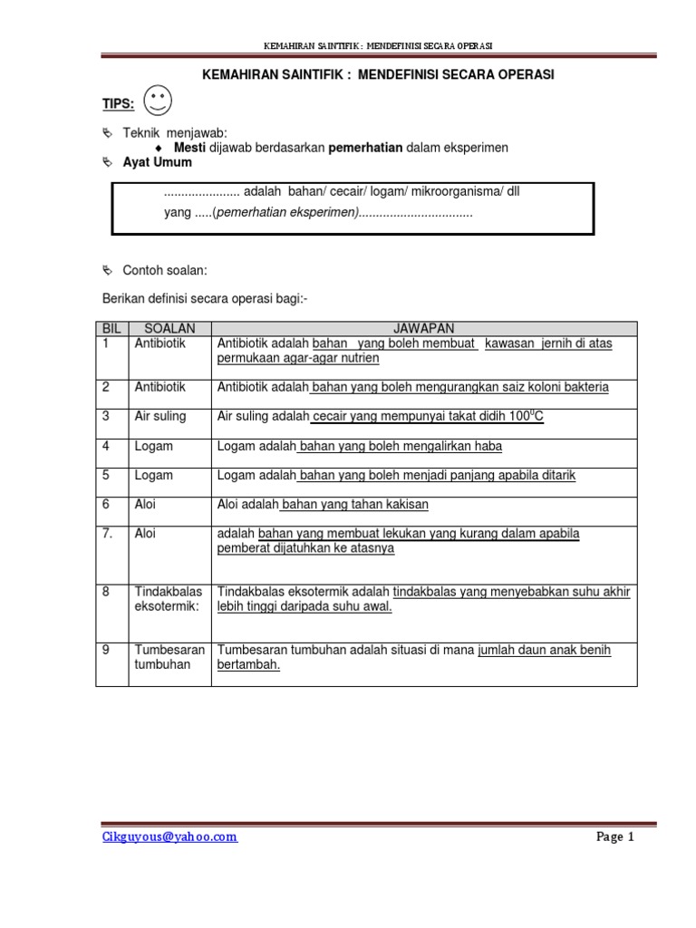 Cara Jawab Soalan Definisi Secara Operasi Sains