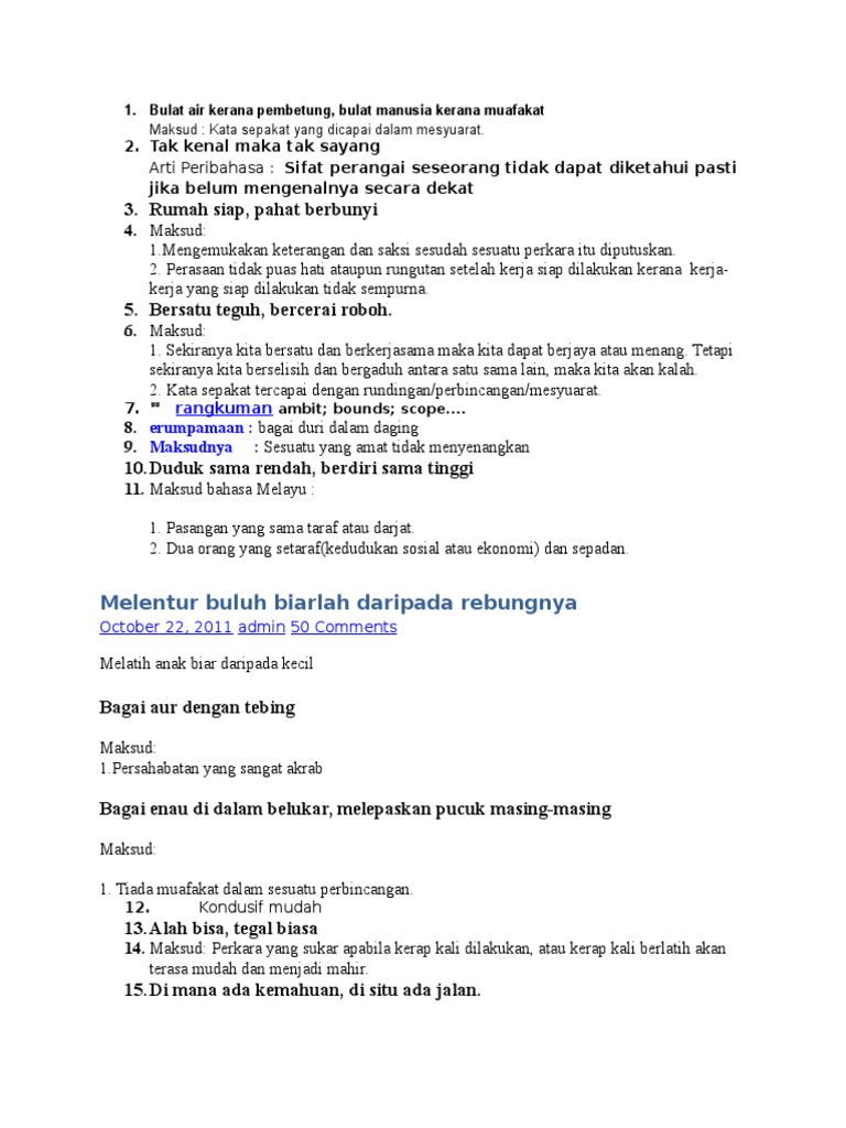 Nyatakan Dua Contoh Peribahasa Dan Makna