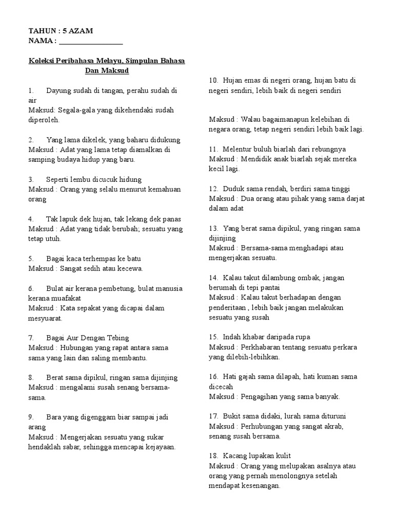 Peribahasa Melayu Simpulan Bahasa Dan Maksud