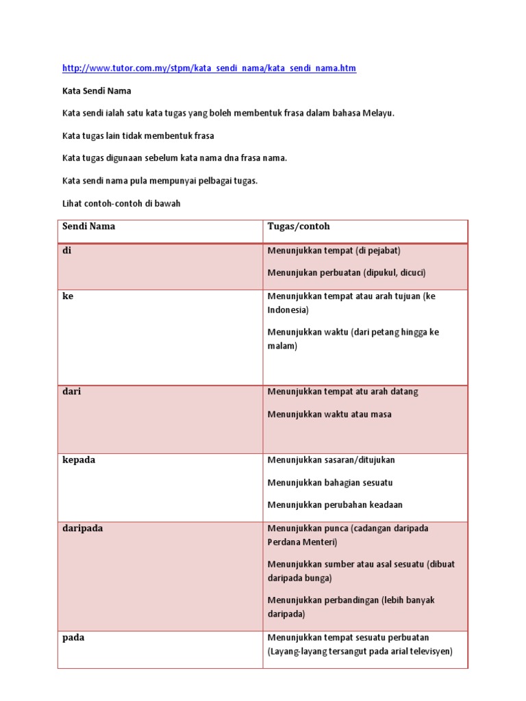 Viewcontoh Kata Sendi Nama Juga Diberikan Sebagai Panduan Kepada Pembaca 4 Tajuk Beberapa Masalah Dalam Pengajaran Bahasa Malaysia Url Docx Document