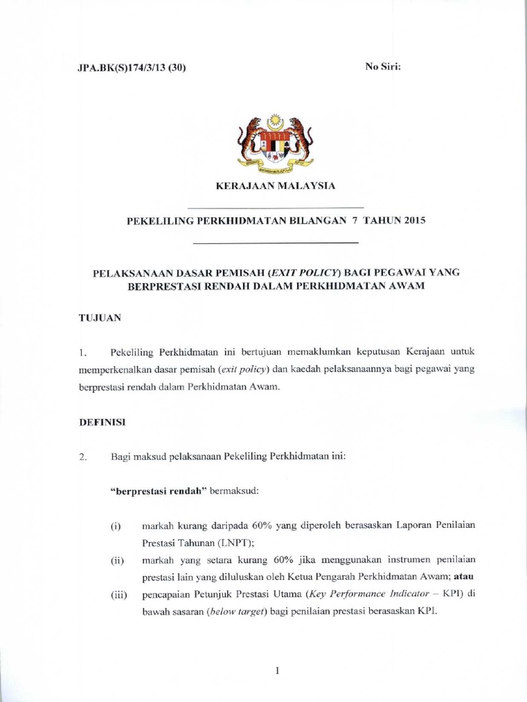 Pekeliling Exit Policy
