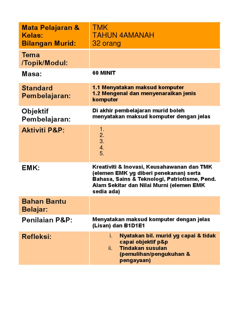 Tema Topik Modul Masa Standard Pembelajaran Objektif Pembelajaran Aktiviti P P