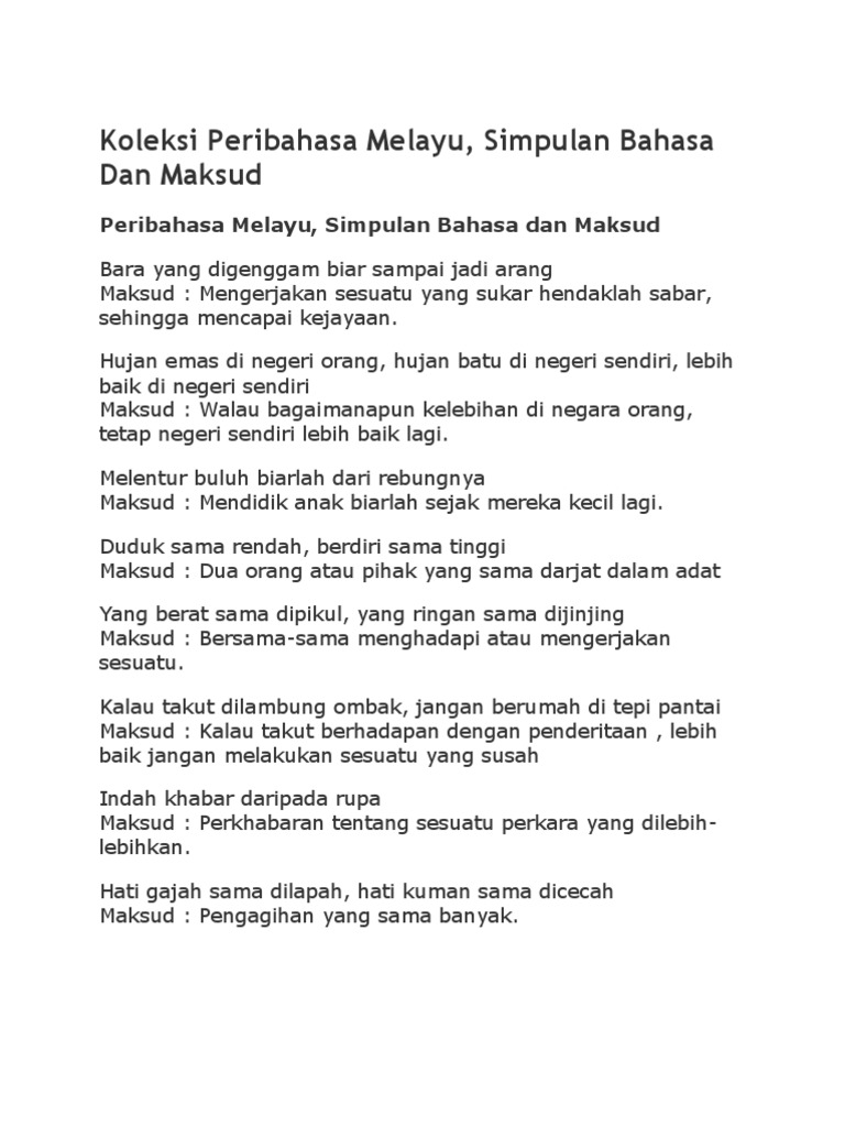 Doc Senarai Peribahasa Dalam Buku Teks Tingkatan Eeeee Waaaa Academia Edu