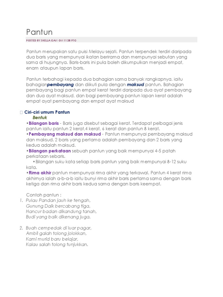 176622400 Bentuk Dan Jenis Pantun Docx Bentuk Dan Jenis Jenis Pantun Pantun Terdiri Dari Banyak Jenis Dan Bentuk Jenis Jenisnya Ialah Pantun Dua Kerat Course Hero