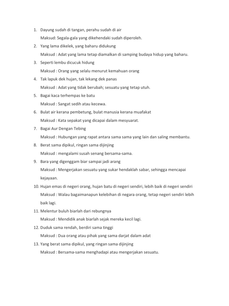 Senarai Peribahasa Melayu Dan Maksudnya Rujukan Bahasa Melayu Upsr Pt3 Spm Dan Stpm Pendidikanmalaysia Com