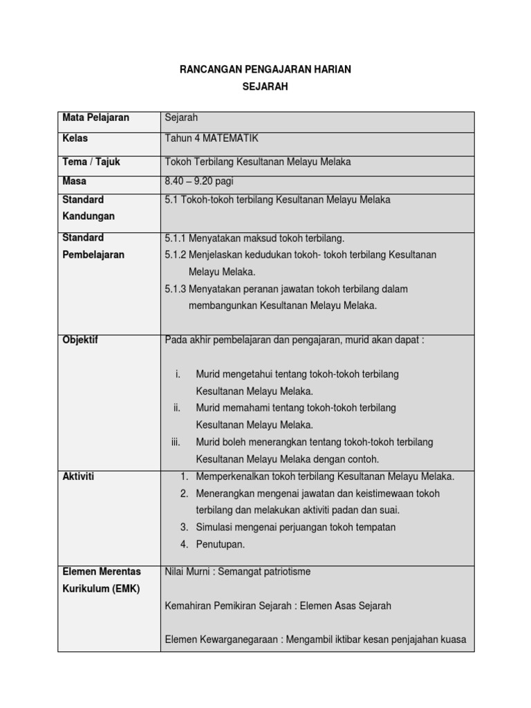 Dokumen Tips Rph Tokoh Terbilang Melayu Melaka Sejarah Tahun 4 Beh