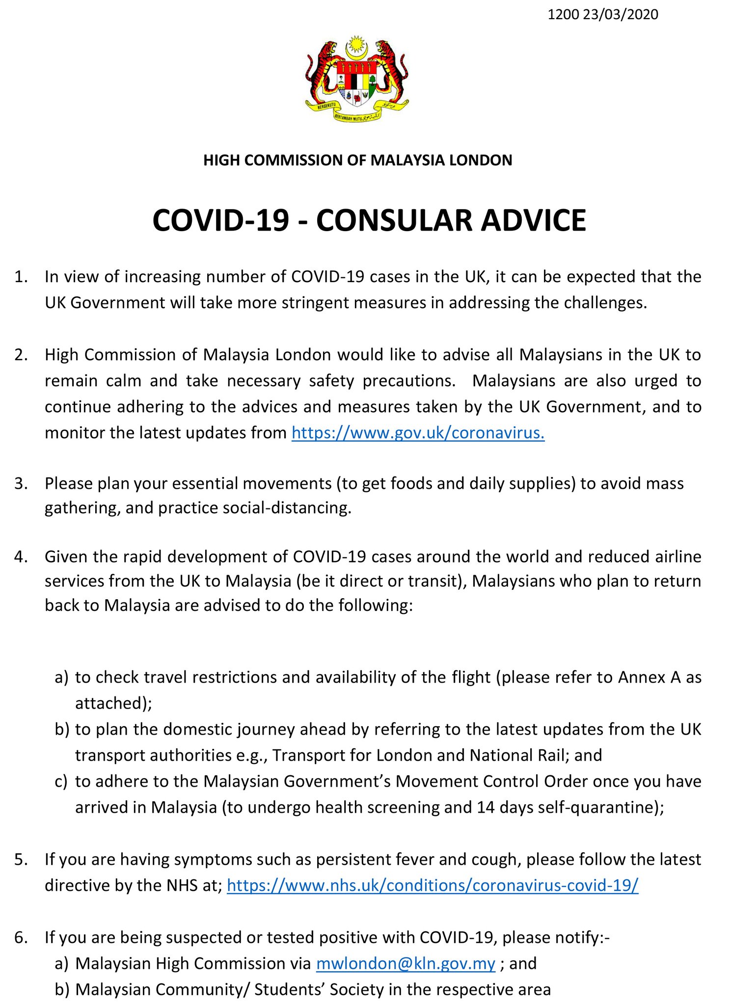 Malawakil London On Twitter Consular Advice For Malaysians In The Uk Malaysiamfa Covid19