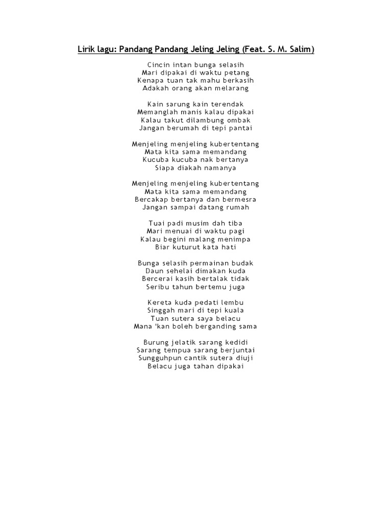 Pandang Pandang Jeling Jeling Hq Lyrics And Music By Siti Nurhaliza Sm Salim Arranged By Fazfazida2