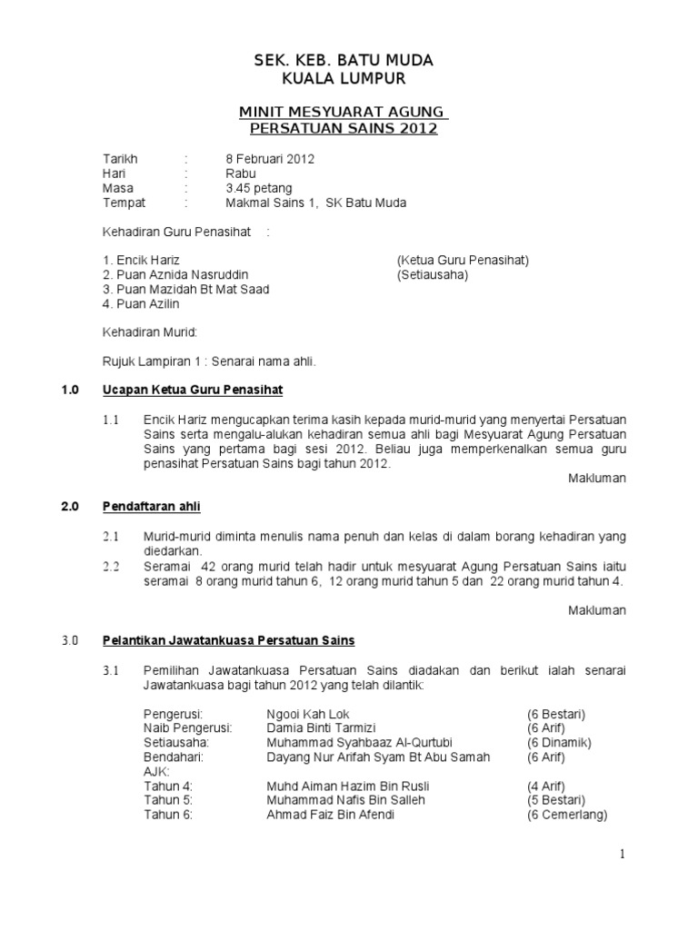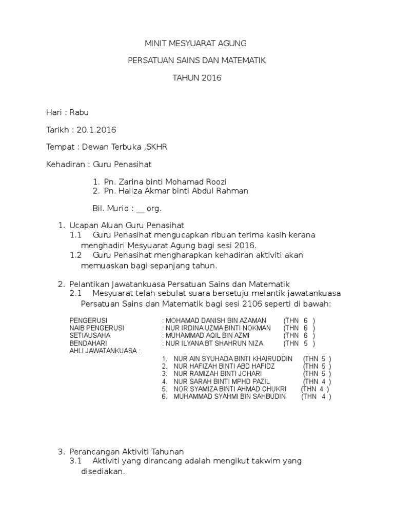 Minit Mesyuarat Agung Persatuan Sains Dan Matematik 1