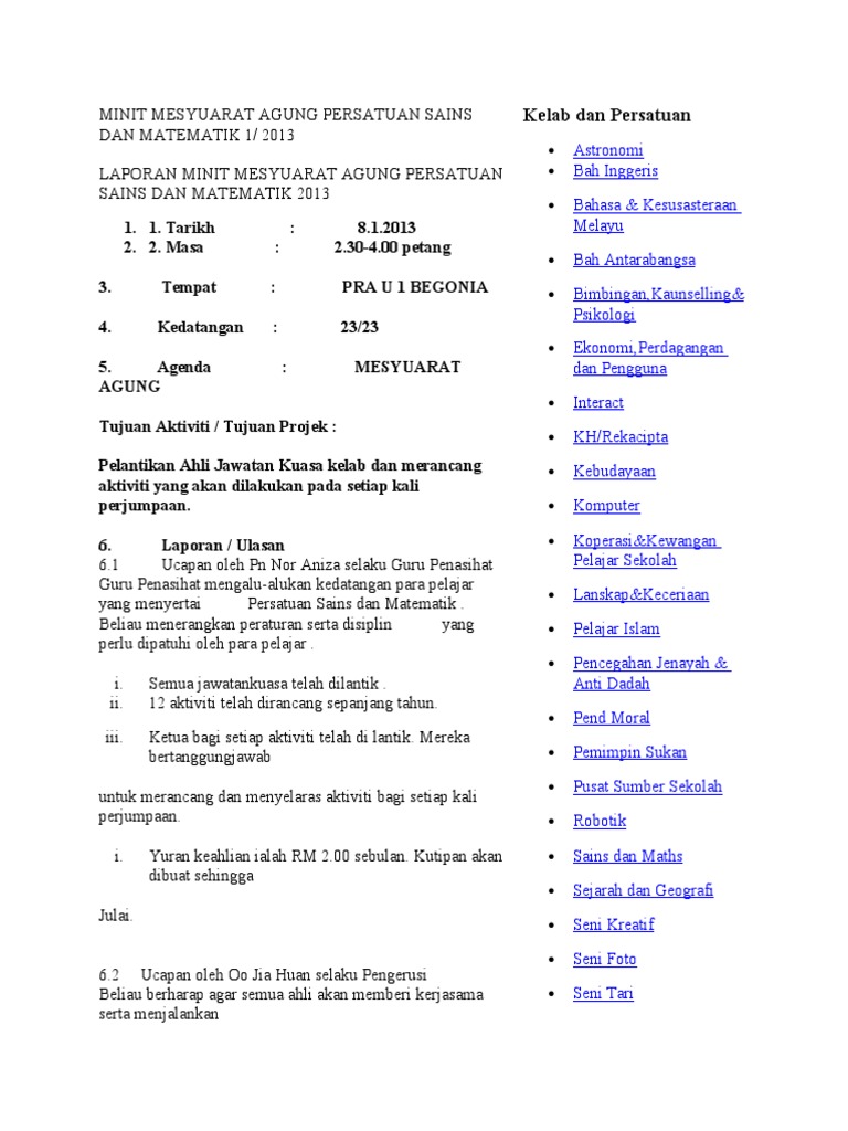 Minit Mesyuarat Agung Kelab Sains Dan Matematik New