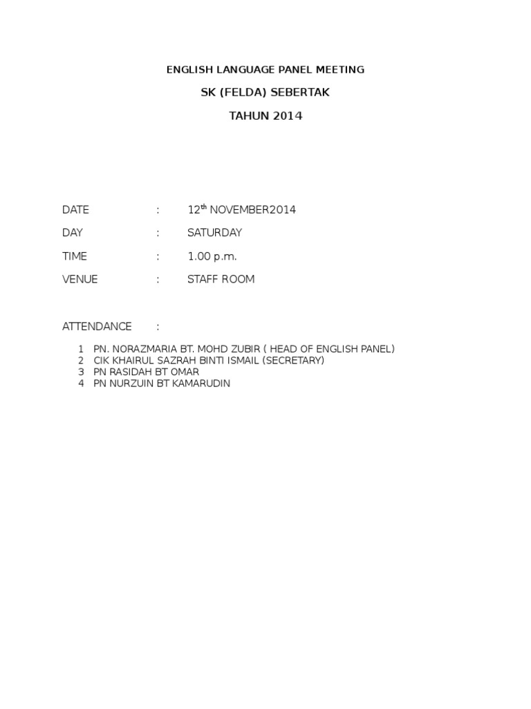 Doc Minit Mesyuarat Panitia Bahasa Inggeris Alis Hafizi Academia Edu